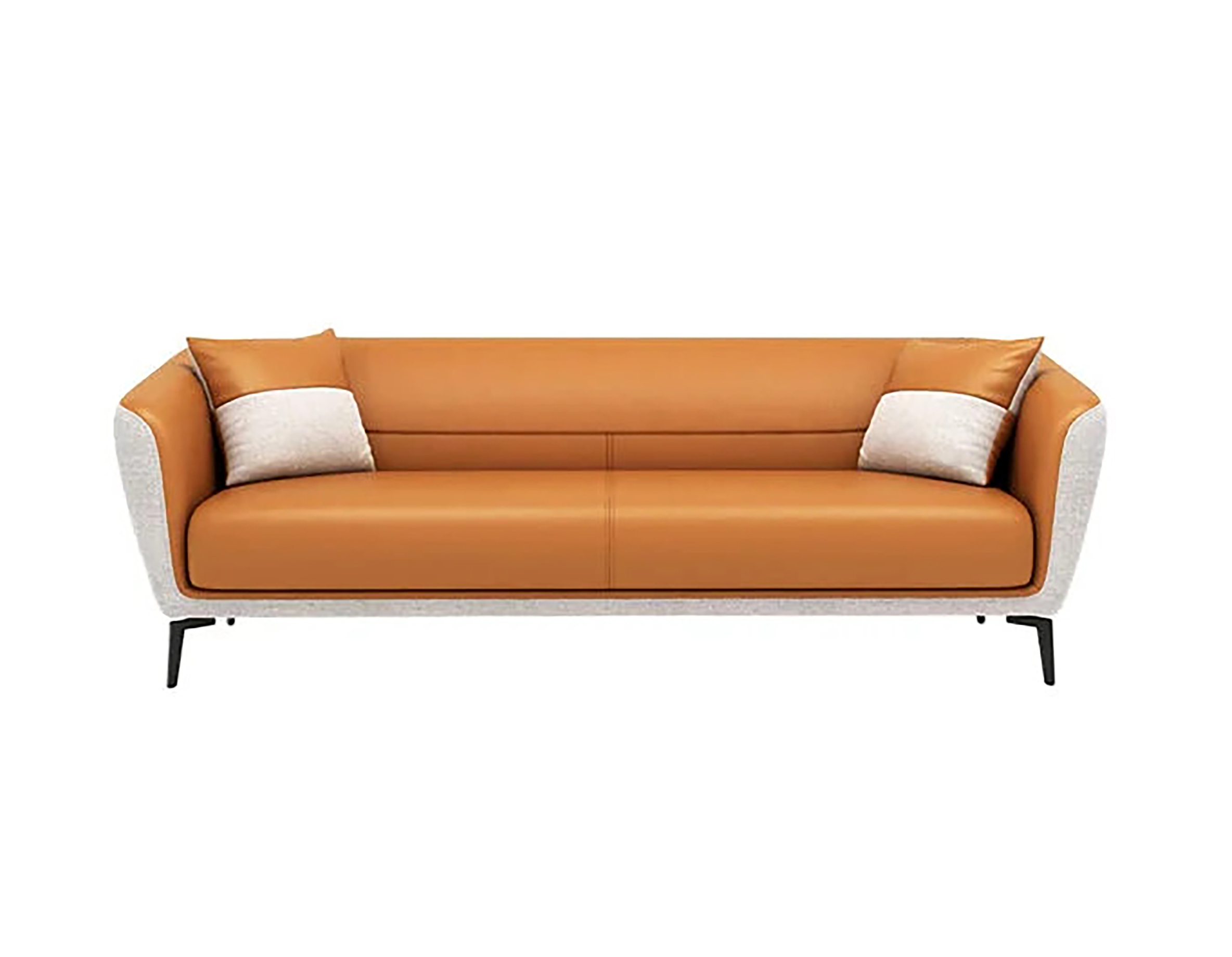 • Dual-Material Construction: The sofa utilizes a two-tone design, featuring a smooth cognac or tan leather (or high-quality synthetic) on the interior seating surfaces.